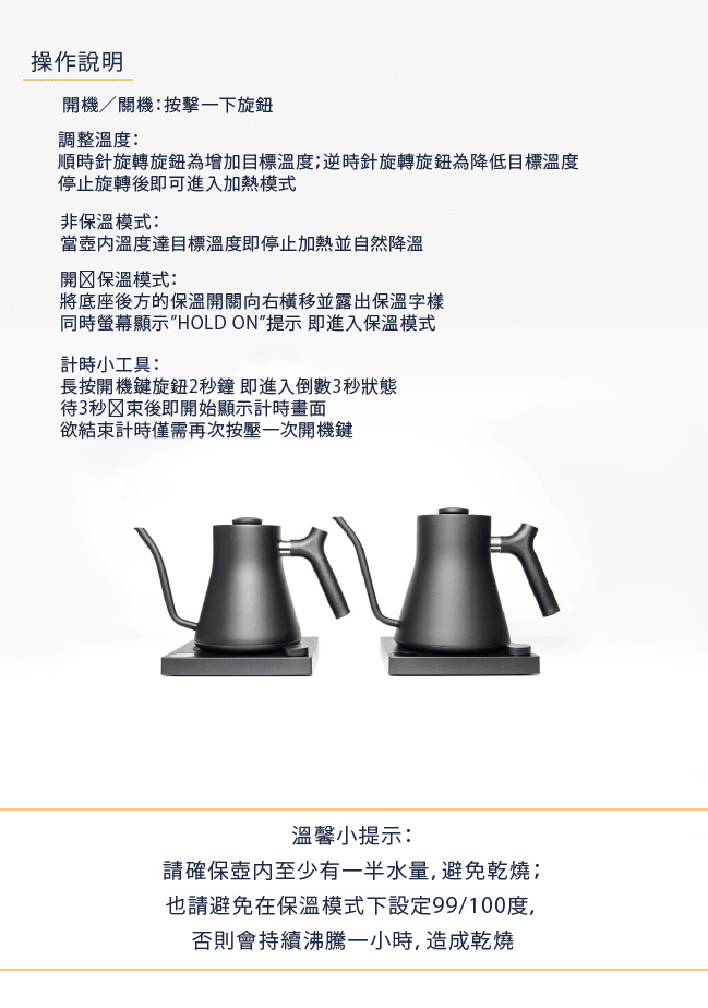 保存方式:壺身及底座請保持乾燥,潮濕時請勿通電