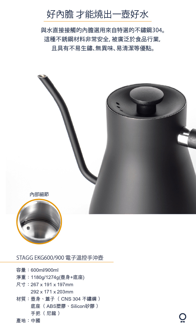 FELLOW STAGG EKG 電子溫控手沖壺 細口手沖咖啡加熱壺600ml 啞光黑/霧面白