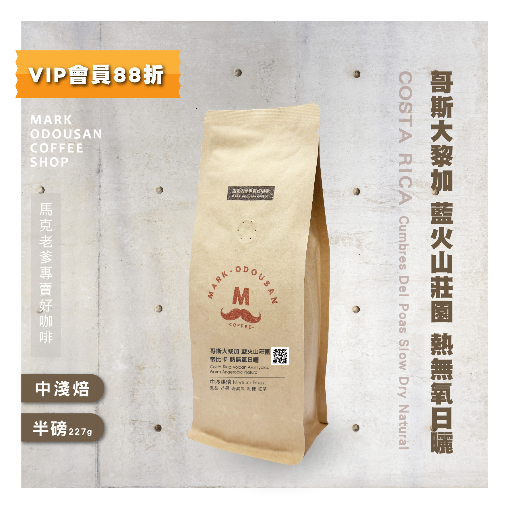 哥斯大黎加 藍火山莊園 帝比卡 熱無氧日曬 咖啡豆(半磅227g)