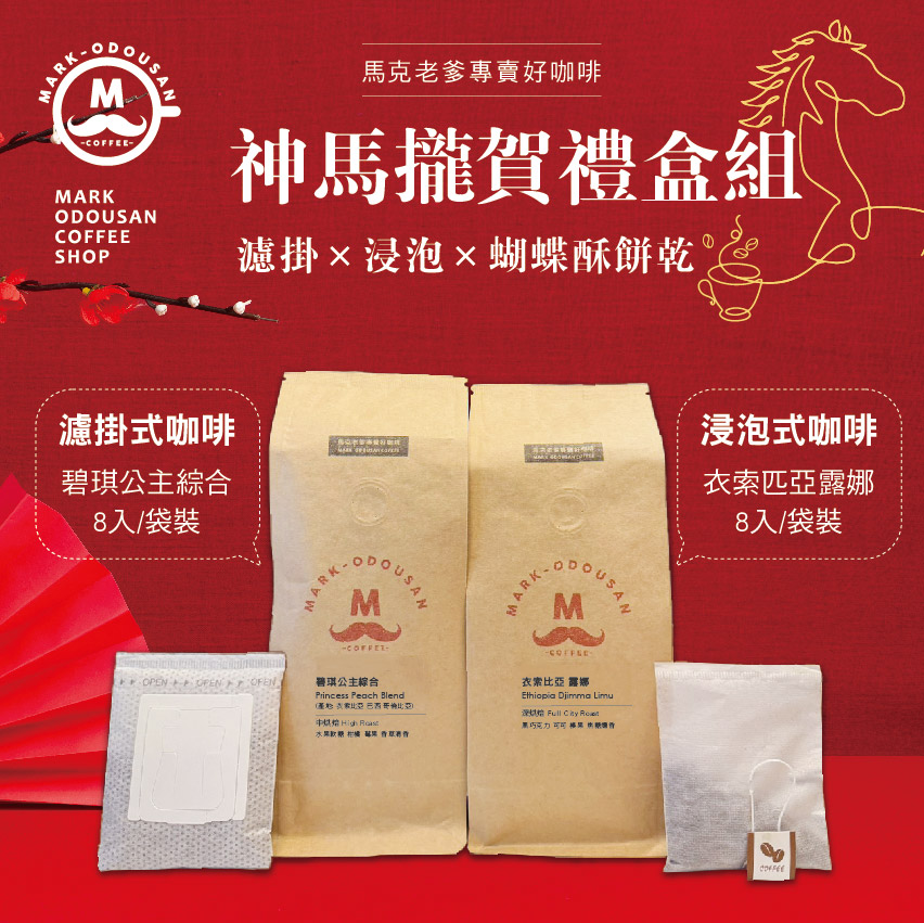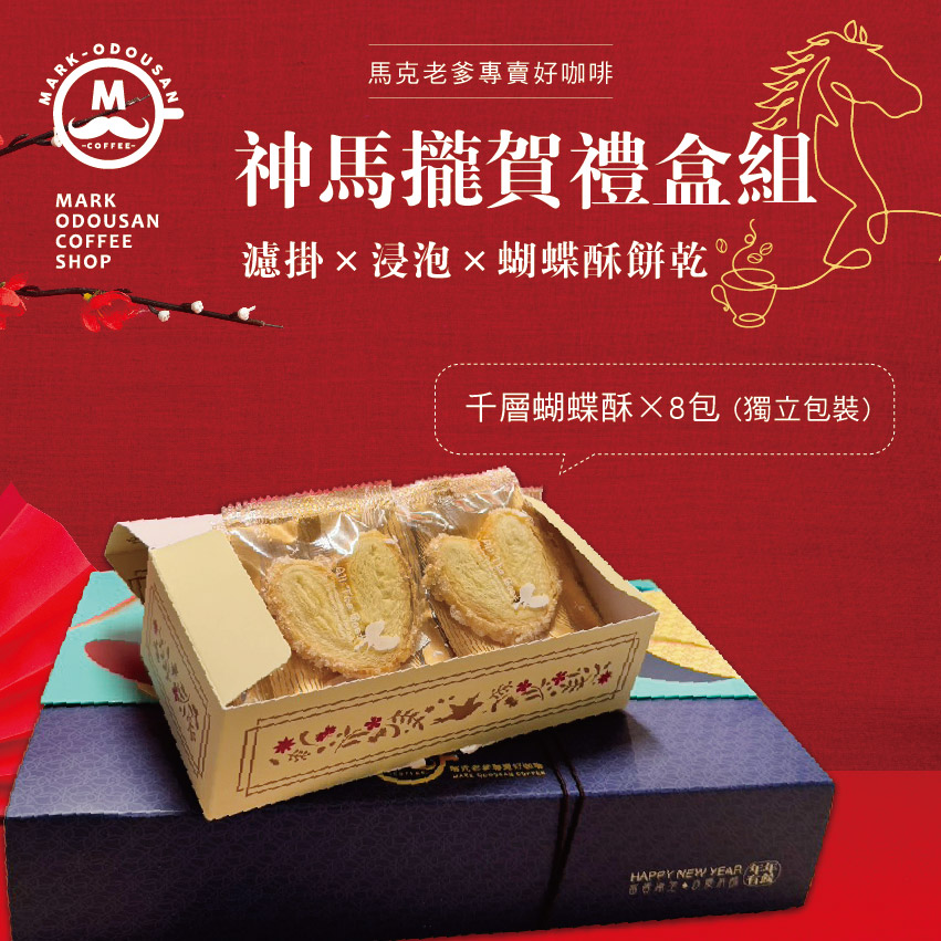 神馬攏賀禮盒組 濾掛咖啡×浸泡咖啡×蝴蝶酥餅乾